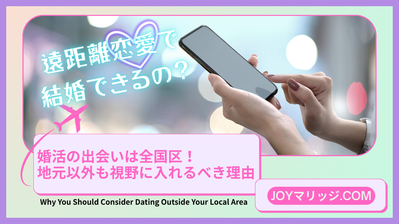 最初から「近場でなければダメ」という先入観だけで選択肢を狭めてしまうと、本当に相性の良い相手との出会いを逃してしまう可能性があります。