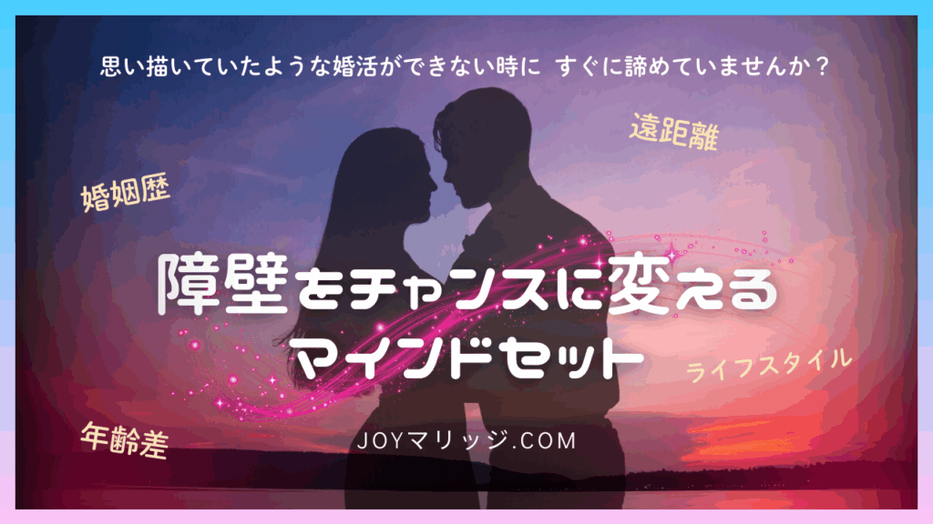 婚活を進めていく中で、様々な困難や課題に直面することがあります。年齢の問題、経済面での不安、そして物理的な距離の問題など。多くの方がこれらを「乗り越えるべき... -