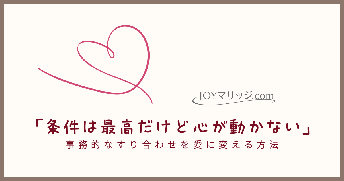 これは、二人の将来を「一緒に創り上げる夢」ではなく「解消すべき課題」として扱ってしまった結果です。 条件のすり合わせ自体は、確かに二人の将来に必要なことではありますが、そのプロセスが単なる事務手続きになってしまうと、そこに温かな愛情が通うことはありません。