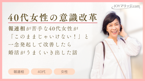 すると、その後の変化は目覚ましいものがありました。それまで敬遠していたタイプの男性からのお申し込みも前向きに検討されるようになり、お見合いを重ねた結果、仮交際へと進展することができました。