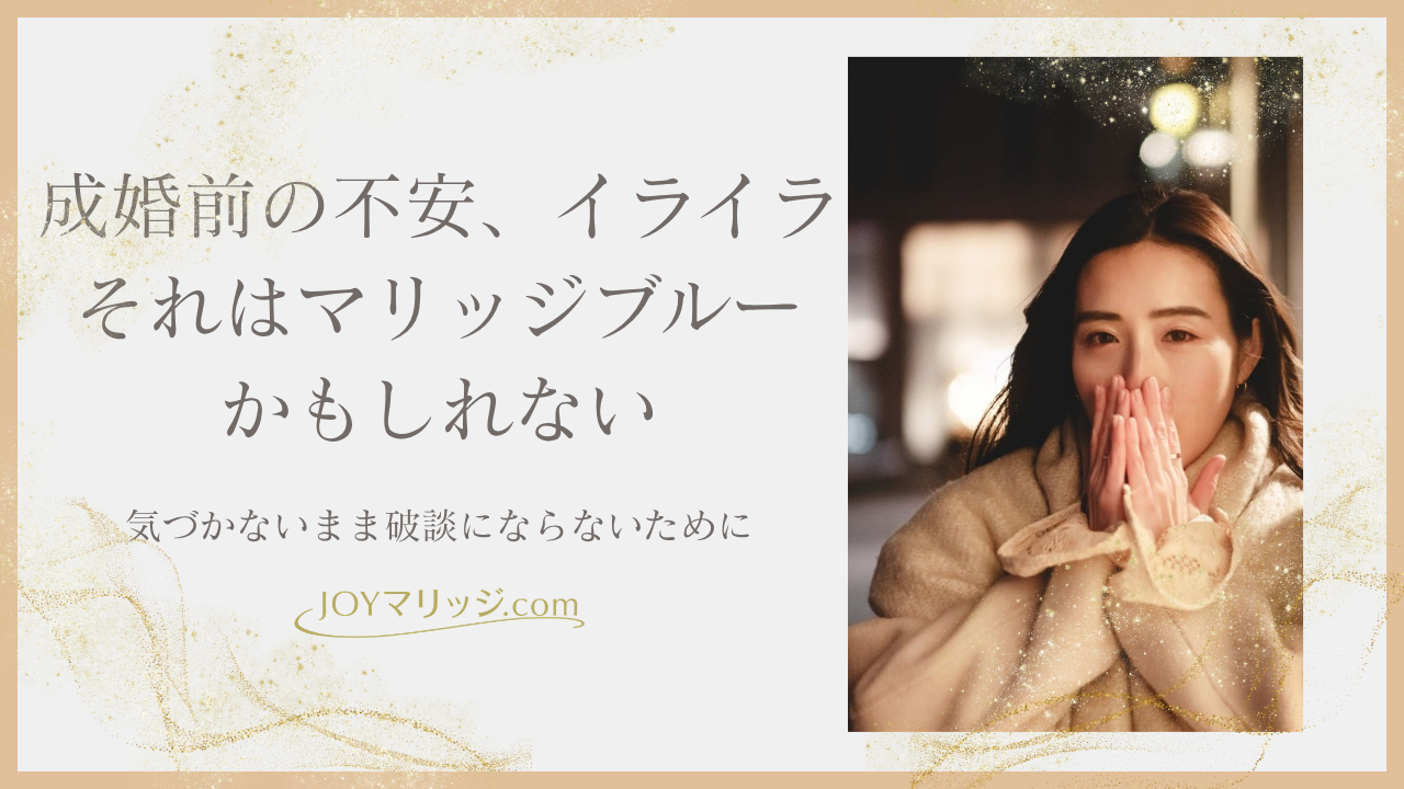 JOYマリッジ.comでは、入会の際に必ず「早ければ3か月後、半年後には人生が180度変わるかもしれません。そのときにマリッジブルーになることはよくあることです。だから、活動を始めると同時に、結婚の覚悟もしておいてくださいね」とお伝えしています。それくらい、婚活における成婚直前のマリッジブルーは「あるある」なんです。