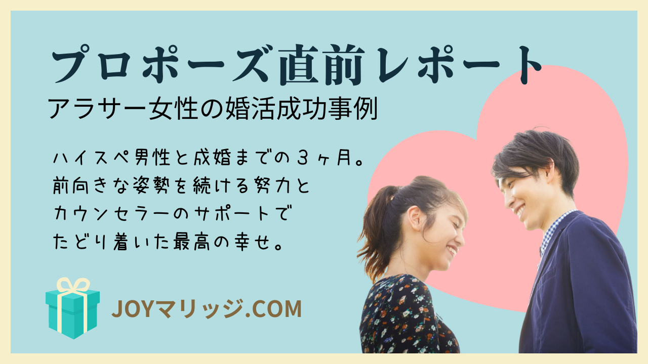 アラサー女性が成婚へ!プロポーズ直前レポート|前向きな婚活とカウンセラーのサポートの成功事例