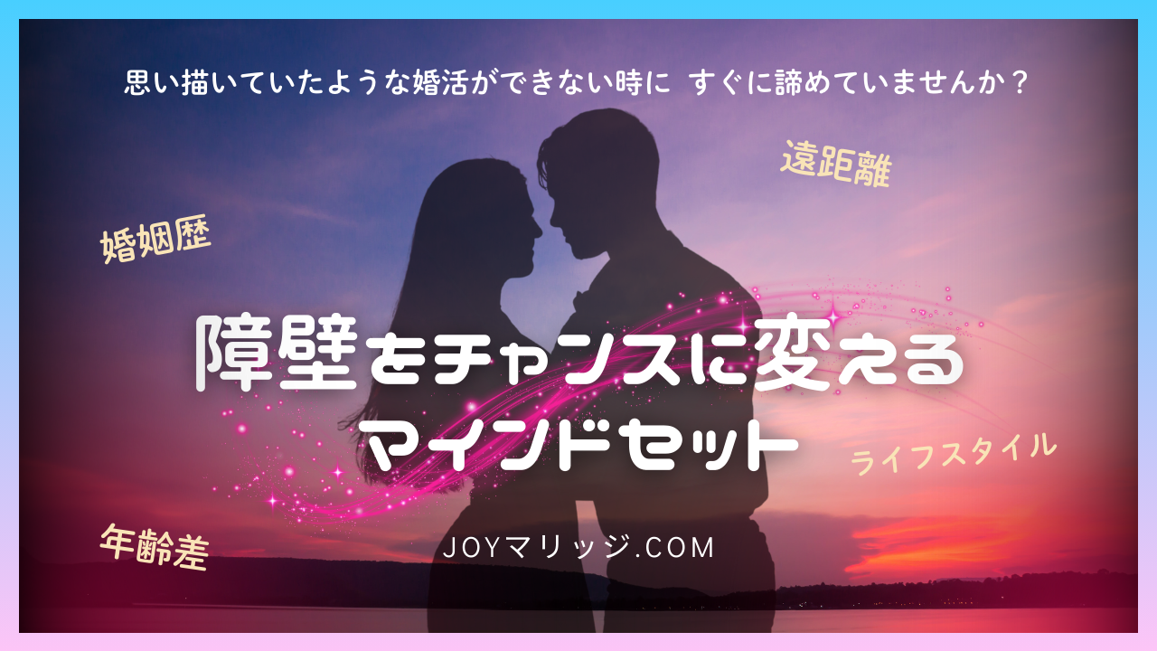 婚活を進めていく中で、様々な困難や課題に直面することがあります。年齢の問題、経済面での不安、そして物理的な距離の問題など。多くの方がこれらを「乗り越えるべき困難」として捉えがちですが、実は成婚される会員さまに共通する特徴として、あらゆる困難を「成功への足がかり」として活用するポジティブな発想力があります。